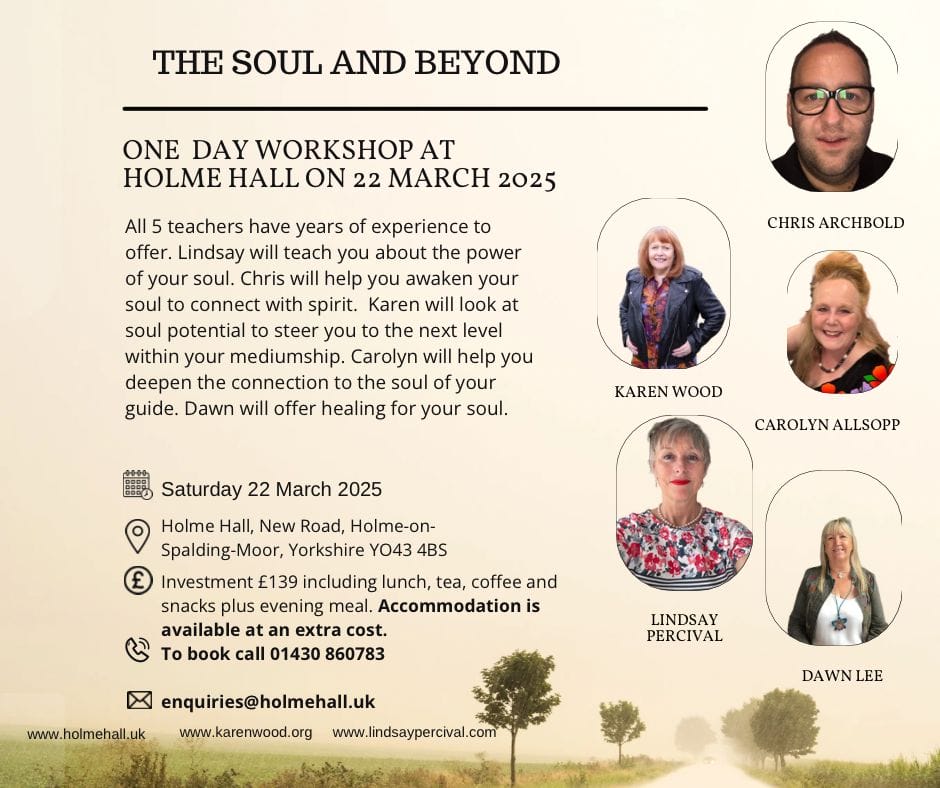 A one-day workshop for all levels Karen Wood-Neath will lead this workshop, guiding you in opening and expanding the psychic tools that support your spiritual journey. If you’re ready to deepen your abilities and further develop your psychic toolkit, don’t hesitate—secure your place in this transformative course today. NOTE: Payment in full and none refundable.